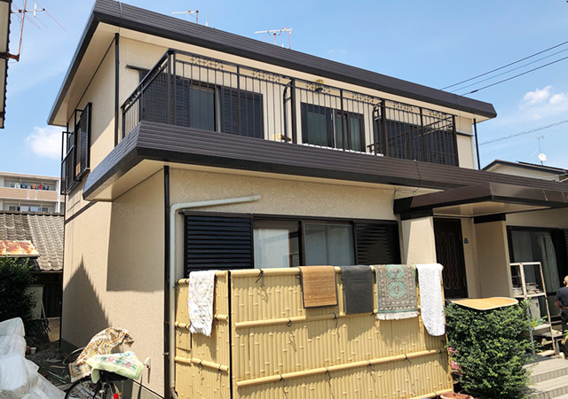 - 経年劣化や塗装の素地調整不足、下塗り塗料の過度の硬化による塗膜表面の割れなどが原因で素地や塗膜の層間において付着力低下を引き起こし、外壁から塗膜が浮き上がり剥落してしまう状態です。 そのまま放置しておくと内部に水が入ってしまい、建物構造材が腐食してきますので早めの補修をおすすめします。